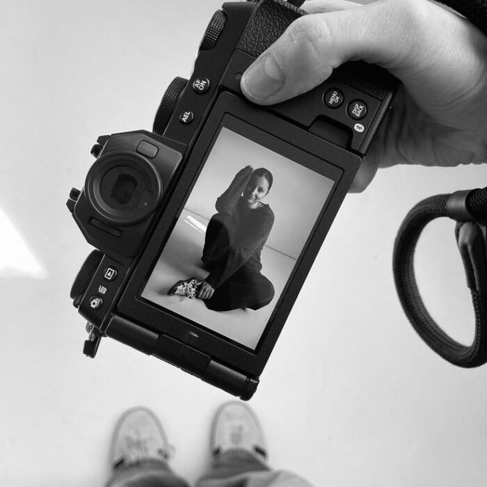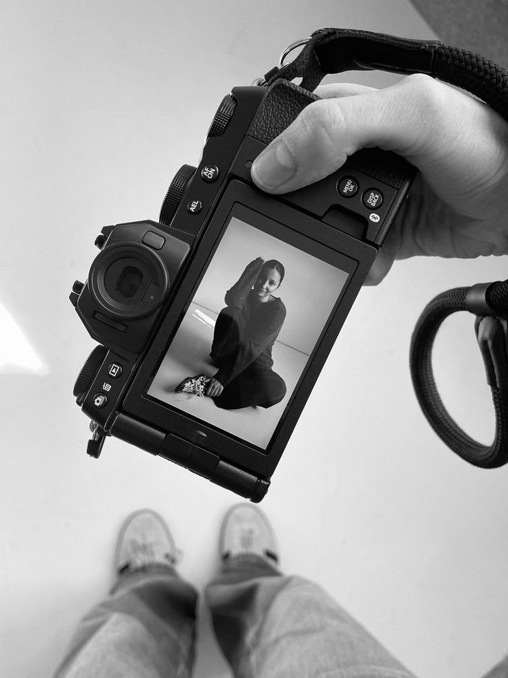 Цветове: Монохромната база (черно и бяло) препраща към класическата фотография, а акцентът „Signal Red“ добавя фокус, енергия и модерен характер.